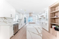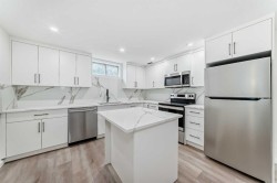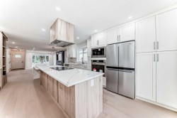 Enjoy the convenience of being just minutes from local schools, parks, and shopping centres, making day-to-day errands effortless. The quiet, tree-lined street enhances the sense of community, while nearby transit options offer easy access to the city core. This thoughtfully updated bungalow blends modern amenities with a welcoming atmosphere, ready for you to call it home. Welcome to this beautifully renovated bungalow located on a quiet street in the well-established community of Woodlands. With over 1,400 sq. ft. of living space on the main floor, this home offers the feel of a brand-new build combined with the charm of a mature neighborhood. Step inside to a bright and open-concept layout featuring brand new hardwood floors, a chef-inspired kitchen with all-new stainless steel appliances, and a massive island—perfect for entertaining family and friends. The spacious living room boasts a cozy fireplace, and the dining area is ideal for hosting gatherings. The main floor includes three generously sized bedrooms, including a primary suite with a private 3-piece ensuite. Large new windows throughout provide an abundance of natural light. Downstairs, the fully finished basement offers incredible versatility with a second kitchen (including an island), three additional bedrooms, a full laundry room, and plenty of living space. With the potential for a separate entrance, this home can easily be suited for rental or multigenerational living. Additional upgrades include a new furnace, hot water tank, and a large private deck—perfect for enjoying summer evenings. Whether you're a growing family or looking for investment potential, this home is a must-see. Note Motivated seller