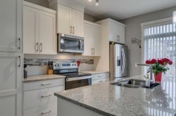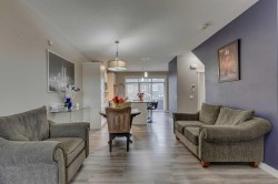 Welcome to 659 Evanston Manor, a bright and modern townhome in the sought-after ARRIVE complex in Evanston. Ideally situated in one of the best locations in the community, this home is tucked into a quiet back corner away from the traffic of 14th Street and Symons Valley Road, yet still just a quick walk or drive to main conveniences. Offering one of the most desirable floorplans in the development, this unit features three bedrooms, two full bathrooms upstairs, an attached double garage, and a competitive condo fee under $400.Step inside to an inviting open-concept main floor where the living room, dining area, and spacious kitchen flow seamlessly together. The kitchen impresses with its large island, generous cabinetry, and a walk-in pantry rarely found in townhomes. From here, enjoy access to your large private balcony—perfect for a BBQ or relaxing in the sun. A convenient two-piece powder room completes the main level.Upstairs, the primary bedroom is a true retreat with vaulted ceilings, double closets, and a well-appointed three-piece ensuite. Two additional good-sized bedrooms and a four-piece bathroom provide comfortable space for family, guests, or a home office. The lower level adds even more functionality with a family or flex room, laundry area, and direct access to your attached double garage—keeping daily living easy year-round without having to step outside. This well-located townhome combines space, comfort, and convenience in a fantastic Evanston location.
