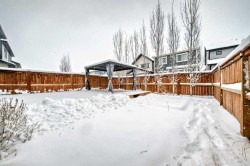 NEW PRICE!!!! Beautiful, fully finished two-storey home in the award-winning lake community of Mahogany. This property offers central A/C, 4 bedrooms, a bonus room, and a bright open-concept main floor with oversized windows.The kitchen features a grey-tone island with breakfast bar, quartz countertops, subway tile backsplash, stainless steel appliances, white shaker cabinetry, and a chimney-style hood fan. The adjoining dining area and living room provide spacious, functional living.The upper level includes a centrally located bonus room, two secondary bedrooms, a full bathroom, and a generous primary suite with tray ceilings, a custom double-closet layout, and a 5-piece ensuite with dual sinks, quartz counters, a soaker tub, and a walk-in shower. Upper-floor laundry adds convenience. The professionally finished basement offers a large rec room, office/gym space, a third full bathroom, and ample storage. The sunny, landscaped backyard is fully fenced and surrounded by mature trees for added privacy. Permanent GoBright exterior lighting provides year-round functionality. Located close to schools, shopping, restaurants, transit, and offering lake and beach access. OPEN HOUSE on SATURDAY & SUNDAY Dec 20 & 21 from 11 am to 1 pm.