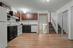 Welcome to 6938 Laguna Way N.E., a spacious and beautifully updated 4-level split offering 5 bedrooms, 3 full 4-piece bathrooms, and incredible versatility for homeowners, investors, and multi-generational families.Step inside to a large main floor featuring an open dining area that flows seamlessly into a cozy living space complete with a charming fireplace—perfect for gatherings and relaxation. The bright, functional kitchen is equipped with a new electric stove, convenient stacked washer and dryer, and a walkout that provides easy access to the outdoors.The upper levels offer well-sized bedrooms, including a comfortable primary suite with its own 4-piece ensuite. Every bathroom throughout the home is a full 4-piece, ensuring comfort and convenience on every level.The lower level boasts an illegal basement suite with roughed in stove outlet, ideal for rental income or extended family living. This suite includes its own bedrooms, bathroom, living space, and a relaxing jacuzzi tub—a unique touch that elevates the space.Well-kept and recently renovated to keep up with modern living, this home is move-in ready and packed with potential. Whether you're a first-time homebuyer looking to rent out the basement, an investor seeking a long- or short-term rental opportunity, or a multi-generational family needing extra space, this property fits the bill.Located within walking distance to parks, schools, transit, and more, 6938 Laguna Way N.E. combines comfort, convenience, and incredible value.