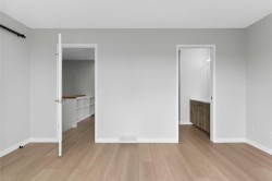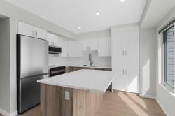 Welcome to this fully renovated townhome in the prestigious community of Patterson, where modern elegance meets everyday comfort. From top to bottom, no detail has been overlooked—fresh designer paint, sleek luxury vinyl plank flooring, and a stunning glass-railed staircase set the tone for the contemporary style throughout. The gourmet kitchen is a true showpiece, showcasing brand-new custom cabinetry with a wall pantry and pull-out drawers, high-end stainless-steel appliances, quartz countertops, and a spacious island with additional storage, pull out drawers, electrical outlet, and breakfast bar for casual dining or entertaining. Flowing seamlessly from the kitchen is a chic powder room and access to your expansive south-facing deck, perfect for summer barbecues while enjoying the serene green space backdrop. The inviting dining and living area are enhanced by a cozy corner gas fireplace with new stone mantel, while upstairs you’ll find a luxurious primary suite with stylish barn doors, a walk-in closet, and direct access to the spa-inspired 4-piece bathroom complete with a soaker tub and glass shower. A spacious second bedroom offers versatility for guests, children, or a home office. The home is finished with an attached insulated double tandem garage and additional storage, making it as functional as it is beautiful. Nestled atop a scenic ridge in Southwest Calgary, Patterson offers residents effortless access to major bus routes and Bow Trail, nearby top-tier Public, Catholic, and Private Schools, plentiful parks and green spaces—including Edworthy Park, Prominence Park, and extensive trails—and an array of shopping, dining, and recreational amenities just minutes away. Don’t miss your chance to make this exceptional home yours—schedule your private showing today!