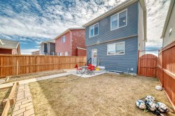 Welcome to the desired community of Redstone, features 2 storey home with over 1800 SQ feet of living space. Total of 3 bedrooms and 2.5 bathrooms, open concept including double detached garage. This lovely home is in the front of an open field, greenery and plenty of extra parking. This remarkable home is tailored for modern living, boasting a host of features designed to enhance your lifestyle. Upon entering, you're welcomed by a dynamic 9’ ceiling main floor. The focal point is the versatile office/flex/formal dining room, offering an ideal space for both productivity and relaxation. Kitchen has a gas stove, microwave hood fan, stainless steel 3 door fridge and dishwasher including breakfast bar with granite countertop that’s complete the kitchen. Adjacent to the kitchen is a cozy living room, perfect for intimate gatherings, complemented by a convenient half bath for guests' comfort. Upstairs, the master bedroom, complete with its own 3-piece ensuite. Two additional bedrooms provide ample space for family or guests, along with a well-appointed 4-piece bath and a convenient laundry closet, making household chores a breeze. Basement has a separate entrance waiting for your touch to finish . Concrete walkway & access to the detached garage , Fenced yard & just minutes from various parks, amenities & easy access to Stoney Trail, and Metis trail .This home is a MUST SEE!!!