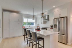 Open House Dec 6 1-3 Pm Upscale executive end unit townhome in the award-winning community of Shawnee Park. This Cardel-built 1880 sq' (builder size) 3 storey offers upscale design and detailed finishing with a substantial amount of upgrades beyond builder spec. Enjoy engineered white oak hardwood floors, upscale shaker-style kitchen with soft close doors and drawers, dovetailed joints, quartz countertops and upgraded appliances. This outstanding home has 9' ceilings, estate casing and baseboard and interior doors as well as sweeping urban views from the living room and the upper level. Sun-drenched south exposure, exposed aggregate driveway, walks and oversized patio. Xeriscape landscaping provides no maintenance and care-free living. Mechanical upgrades inc HEPA filter, high efficacy A/C , high efficiency F.A furnace with Redlink Honeywell controller to balance efficiency, electronic water softener, and RI for home dialysis machine (hidden in a closet). Hunter Douglas window coverings with custom blackouts and sun shades, bottom-up top-down blinds. The oversized garage is insulated, drywalled, and has a polished concrete floor. Loads of storage and more. This unique complex of adult homes (7 units) is designed to offer the best in living, convenience and lifestyle. Condo fees are just under $100.00/ month to cover snow removal and management fees. Walk to Fish Creek Park, the LRT, close to community shopping and the ring road. Compare the price to Cardel's next phase of townhomes starting at $820,000.00.