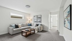 An incredible opportunity to own a brand-new home with a DOUBLE GARAGE and IMMEDIATE POSSESSION in the desirable community of Livingston. The Carlisle II by Brookfield Residential is situated on a bright, sunny lot with a private backyard and offers a thoughtful layout ideal for a young couple, growing family, or investor. This beautifully designed home features 3 bedrooms, 2.5 bathrooms, two living areas, and a main level flex room, with over 1,800 sq. ft. of developed living space above grade. The open-concept main floor showcases 9-foot ceilings, extended-height cabinetry, and a spacious island with a gourmet kitchen, which is complete with a chimney-style hood fan and built-in wall oven and microwave. The large great room is filled with natural light and provides an ideal space for everyday living and entertaining. Durable and stylish luxury vinyl plank flooring flows throughout the main level, making it well suited for families with children and pets. Completing this level is a versatile flex room, perfect for a home office or playroom, along with a convenient 2-piece bathroom. Upstairs, the central bonus room thoughtfully separates the primary suite from the secondary bedrooms, offering added privacy. The spacious primary bedroom includes a well-appointed ensuite with dual sinks and a walk-in shower. Two additional bedrooms, a full bathroom, and an upper-level laundry room complete the second floor. The undeveloped basement offers excellent future potential and includes a separate side entrance, making it ideal for customization or additional living space. Completing the property is a brand-new double detached garage to keep vehicles warm and secure year-round, along with a private backyard ready to be enjoyed. This brand-new home is backed by the full Alberta New Home Warranty and offers immediate possession, making it a fantastic opportunity to move into one of Calgary’s fastest-growing communities.