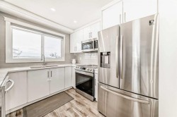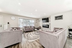 Welcome to this beautifully renovated bungalow, offering modern style updates and an ideal layout for comfortable family living or investment potential.Step into the inviting living room, where a stunning stone feature wall with an electric fireplace. New Kitchen, new flooring, fresh paint, upgraded doors and baseboards, and new windows create a bright, cohesive space perfect for relaxing or entertaining.From the living room, the home flows into the open-concept kitchen. Completely renovated, this stylish kitchen features quartz countertops, a central kitchen island, new stainless steel appliances and ample storage.Also on the main floor, you'll find 3 beautifully updated bedrooms, including a large primary suite complete with a fully renovated 3-piece ensuite bathroom, complete with two additional spacious bedrooms and a modern 4-piece main bathroom.The fully finished basement, accessible through it's own separate entrance, open concept, including a bedroom, den, full bathroom, bar and a second kitchen. Complete with a separate laundry/storage area. Outside, enjoy a large, landscaped backyard, perfect for outdoor entertaining, gardening or simply relaxing with a new fence and a double detached garage.Located close to all amenities, including schools, shopping, parks, and transit, this beautifully updated, turnkey home offers style, functionality, and incredible value. Schedule your viewing today before it’s gone!
