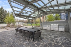 **NEW PRICE** PRESTIGIOUS | PRIVATE ELEVATOR | HIGH FLOOR | CITY SKYLINE & RIVER VIEWS | 2 BEDROOMS + DEN | TWO TITLE PARKING STALLS! WELCOME TO THE CONCORD - Calgary's most prestigious riverfront residence, an architectural icon that defines luxury living! Experience this unparalleled luxury large unit living at The Concord, where a private elevator transports you directly into your exquisite residence. This stunning home is designed with the finest finishes and features, including a German-engineered Poggenpohl kitchen, Miele appliances. The thoughtfully crafted interior boasts engineered hardwood flooring, Bianco Carrara marble accents, rich walnut detailing, a full-height Bianco Statuario marble encased fireplace, and floor-to-ceiling windows showcasing breathtaking Bow River views. Enjoy year-round comfort with heated tile flooring, a horizontal four-pipe fan coil system for heating and cooling, and a BRIGHT GLASS DOOR OPEN DEN perfect for a home office. The spacious primary suite is a private retreat with a custom walk-in closet, and a 5-piece spa-inspired ensuite, complete with dual sinks, a deep soaker air-jet tub, a separate shower and heated marble floors. A patio door leads to a private balcony, offering a serene escape with stunning city and Bow River views. The second bedroom also enjoys balcony access and its own floor-to-ceiling marble bathroom with heated floors. Additional features include an in-suite full-size washer and dryer, two titled side by side parking stalls, and a titled storage room. World-Class Building Amenities include: 24-hour Concierge & Security services | 6 high-speed Elevators | Elegant Social Lounge with a Bar, full kitchen for your private events | State-of-art Fitness Centre | Touch-less automatic car wash | Ample guest parking | Stunning outdoor water garden and pond (transforms into a winter Skating rink) | Outdoor kitchen with BBQ and 2 fire-pits, perfect for entertaining. Exciting future amenities (Phase II - Launching in May, 2025) include: Resort-style swimming pool and a hi-tech golf simulator. With unparalleled elegance, world-class amenities, and the best value in The Concord. This offering is truly one-of-a-kind and best value in Calgary RIVER FRONT luxurious living. CALL TODAY TO SCHEDULE YOUR PRIVATE VIEWING!
