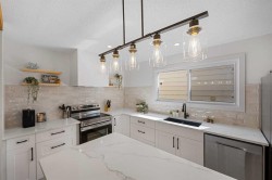 **OPEN HOUSE SAT/SUN 1-4PM** Welcome to "Paradise at Berkley"! This 5 bed + 2.5 bath fully remodeled semi-detached Bungalow with a WALKOUT Basement has been thoughtfully REMODELED from the studs up in a modern farmhouse style. With a beautifully finished 2 bed + 1 bath illegal SUITE, this home offers the perfect balance of family living with a downstairs rental, or a multi-generational household. With Brand NEW PLUMBING throughout the entire home, this property makes an incredible investment! Inside, the Open Concept floor plan is bursting with style. Superior craftsmanship is showcased throughout — from the massive Oak BEAM framing the kitchen paired with 8mm light oak LUXURY VINYL PLANK flooring running seamlessly across the home, custom 'hidden' laundry tucked behind dual Barn Doors, and new windows that flood the home with natural light. Your guests will love cozy evenings around the custom electric fireplace, where elegant tilework and a tailored frame add warmth and sophistication. The chef-inspired kitchen is a showstopper, featuring a statement Custom Range Hood, Quartz Countertops with an undermount Composite Sink, light oak Floating Shelves, a spacious Black Fluted Island with breakfast bar, matte black Hardware, a striking cloudy tile backsplash — all tied together with a full suite of Stainless Steel Appliances. The main level features 3 spacious bedrooms and 1.5 baths, including a tranquil primary suite with a VIEW and walk-through closet leading to the private ensuite bath. The Walkout Basement offers a spacious 2 bed + 1 bath illegal SUITE, designed with the same attention to detail — featuring a second CUSTOM Kitchen with crisp white cabinetry, black matte Hardware, and modern finishes throughout. Enjoy the backyard, offering a private space for your family, or tenants and access to your oversized driveway. Whether you’re looking to live up, rent down, or run an Airbnb (as the current owners have successfully done over the summer months), your options are endless. Don’t miss your chance to own ‘Paradise at Berkley’.