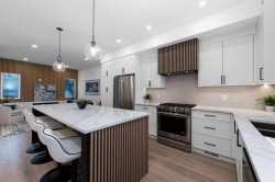 READY TO MOVE IN, BRAND NEW. The Opal on Westmount – Redefining luxury living in West Hillhurst. A modern contemporary 3-story row home just steps from shops and cafés, the Bow River pathway, and the vibrant amenities of Kensington. Designed for those who value elegance, functionality, and convenience, The Opal on Westmount offers a lifestyle that’s deeply connected to nature and city life, all within walking distance to great schools, churches, and outdoor recreational spaces. Situated on the corner of 23 Street and Kensington Road, this home offers unmatched convenience with quick access to downtown, Memorial Drive, and Crowchild Trail. Spanning 1,746 square feet of living space, this townhome is meticulously designed to accommodate active and professional lifestyles. The entry level features a versatile flex room with access to the garage and backyard storage; ideal for a home gym or storing bicycles, skies, and sporting equipment. The main floor has an open-concept layout, starting with a beautiful open living room that features an electric fireplace and wood slate acoustic feature wall. Beside that is a luxurious powder room draped in wallpaper. The gourmet kitchen is designed for entertaining with an unobstructed 9 ft island that can easily seat 4, shaker-style cabinets, a custom wood-slate hood fan, upgraded kitchen aid appliances, a gas range, double sized pantry, and an east facing sink that looks out the window towards the city skyline. Lastly, the main floor features a spacious dining area leading to a private 70 sq ft balcony that has a gas line perfect for a BBQ set up. The top floor is designed for comfort. The primary bedroom has a vaulted ceiling and features the custom wood slate panelling that is used throughout the home. A walk-in closet is hidden behind a pocket door, while the 4-piece ensuite boasts a standing shower and double sinks on an 7 ft vanity, with custom double mirrors on a upgraded wallpaper. Two additional well-sized bedrooms, a 4-piece main bathroom, and a convenient top-floor laundry complete the space. Throughout the home, contemporary finishes and premium materials add a touch of understated elegance. Sustainability meets convenience as the home is fully roughed-in for solar panelling and electrical vehicle charging, providing future-forward solutions for today’s homeowners. Outside, the low-maintenance landscaping is practical as it is beautiful. Move in ready! Book your private showing today.