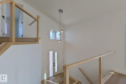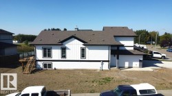 NEW on a CORNER LOT! This bright, family-ready bi-level in the desirable Town of Calmar features a vaulted-ceiling living room filled with natural light and an open kitchen with breakfast Peninsula, ample cabinetry and a dining area overlooking the deck and pond fountains. The spacious backyard offers parking for an RV or fifth-wheel camper, complemented by a 3-car attached garage. Two bedrooms and a full bath are on the main floor, while the upper-level primary suite is a private retreat with 4-piece ensuite. The unspoiled basement with large windows is ready for future development. Just 10 minutes from EIA, this versatile home blends comfort, functionality, and a prime location in a well-established neighbourhood.