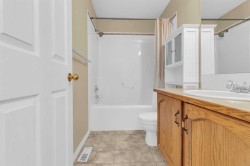 Welcome to this beautifully maintained fully finished bungalow offering nearly 1,100 sq ft of comfortable living space — attached only by a garage wall - and with no condo or HOA fees!The main floor features a bright, open layout with two bedrooms and two full bathrooms, including a spacious primary suite complete with a walk-in closet and private en-suite. The kitchen is updated with newer stainless-steel appliances in 2022, and the hot water tank was also replaced in 2022, giving you added peace of mind.Downstairs, the fully developed basement expands your living space with two additional bedrooms and a large recreation room — perfect for family gatherings, a home gym, or movie nights.Set in a quiet cul-de-sac close to schools, parks and a scenic pond, this home offers direct access to Chestermere’s extensive walking paths that wind along the connected ponds and green spaces — perfect for morning jogs or evening strolls.Just two minutes from Lake Chestermere, you’ll enjoy an unbeatable lifestyle surrounded by natural beauty and year-round activities. Spend your summers boating, paddle boarding, or relaxing at the beach, and your winters ice skating on the nearby ponds or enjoying community events on the frozen lake.This home blends comfort, convenience, and the best of Chestermere living — a true opportunity for anyone seeking space, value, and an active outdoor lifestyle in a peaceful neighborhood.