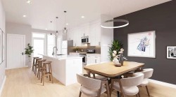 Discover the perfect blend of comfort and modern living in The Bravo—a beautifully designed 1,600 sq. ft. home in the sought-after Bridgeport community of Chestermere. Enjoy 3 spacious bedrooms, 2.5 baths, and thoughtful upgrades including a 10x10 rear deck, 9-ft foundation, and separate rear entrance for future basement potential. The property also includes a 20x21 concrete garage pad and two basement windows, offering both function and flexibility. Nestled near parks, wetlands, schools, and urban amenities, this home delivers the ideal balance of tranquility and convenience. Photos are representative. This is a pre-sale home to be constructed.