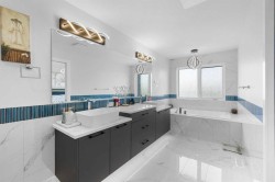 Welcome to 20 Waterford Heights in Chestermere—a breathtaking, fully developed, triple garage, luxury home offering 4,505 square feet of exceptional living space. Perfectly positioned backing onto a scenic pond and lush park with walking paths and a nearby playground, this residence delivers an unmatched blend of natural beauty and refined living.At the heart of the home is a dramatic open-to-below great room with soaring ceilings, a grand feature staircase, and expansive windows dressed with premium motorized blinds—filling the space with natural light and showcasing uninterrupted views of the water and green space. The layout is designed for both elegance and functionality, featuring premium finishes throughout, including custom cabinetry, quartz countertops, and high-end appliances. The chef’s kitchen is a true showpiece, offering a large central island, generous workspace, and a separate spice kitchen for added versatility.The main floor also features a spacious double-door office ideal for working from home, a functional mud room with built-in storage to keep things organized, and a seamless flow between living, dining, and kitchen spaces—perfect for both family living and entertaining. Every detail has been thoughtfully considered to elevate day-to-day comfort and convenience.Upstairs, the home offers two luxurious master suites, each with stunning ensuites, in addition to a third bedroom and full bathroom—providing flexibility for families or guests. The upper-level layout offers the perfect balance of private retreats and shared family space.The fully developed walkout basement continues the theme of spacious, the two bedroom illegal basement suite offers, refined living with a full kitchen, full height windows, 2 bedrooms with full bathrooms each, and a large living area with simulation skylight panels—perfect for a media room, games area, or extended family living.Outdoor living is maximized with patio decks on all three levels—offering multiple vantage points to enjoy the peaceful surroundings. Whether you’re sipping coffee on the upper balcony, enjoying dinner on the main deck, or gathering with friends on the covered walkout patio, the home invites year-round enjoyment and connection to nature. Gemstone exterior lighting perfects the ambiance.With its premium finishes, show-stopping design, and unbeatable location, 20 Waterford Heights is a rare and exceptional opportunity in one of Chestermere’s most desirable communities. This is lakeside-inspired living at its finest—modern, spacious, and move-in ready. Just a few of the many upgrades include: Coffered ceilings, upgraded tile work and LED under lighting in vanities in all bathrooms, heated triple car garage with epoxy flooring and commercial drainage, 5 stage reverse osmosis water filter, 7.2 surround sound system throughout, maple wood work and a smart home system.