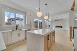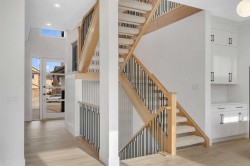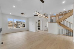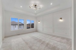 Brand New Luxury Walkout Home – Minutes from Chestermere Lake!Stunning brand-new custom-built luxury home offering over 5,100 sqft of living space with high-end finishes. This home features total of 6 BEDROOMS, 6 BATHROOMS and TRIPLE CAR GARAGE. Perfectly situated in a quiet cul-de-sac with a sunny south-facing backyard, this home combines style, space, and functionality. The main floor features soaring 10-ft ceilings, an open-concept layout with a bright living room, formal dining area, spacious family room, and a large main-floor office/den. The chef’s gourmet kitchen boasts quartz countertops, premium stainless-steel appliances, elegant cabinetry, and a separate spice kitchen. A full bathroom and premium flooring complete this level. The upper floor offers four bedrooms, including TWO MASTER SUITES each with luxurious ensuites and walk-in closets, plus two additional bedrooms, a full bathroom, and a large bonus room perfect for family relaxation or entertainment. The fully finished walkout basement is designed for entertaining, featuring a spacious rec room, custom wet bar, two bedrooms, and two full bathrooms — ideal for guests or extended family.