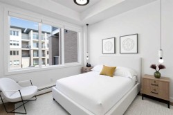 Welcome to this BRAND NEW, never-lived-in 2-bedroom, 2-bathroom condo with a den and 2 TITLED PARKING STALLS, ideally located in the vibrant lake community of Chelsea, Chestermere. Built by TRUMAN, this modern home offers a seamless blend of contemporary design, smart functionality, and everyday comfort—perfect for first-time buyers, downsizers, or investors. Enjoy the lake lifestyle just minutes from Chestermere Lake, featuring beach access, a boat launch, scenic walking paths, parks, and playgrounds. Everyday conveniences are close by, with Chestermere Station and Chestermere Crossing nearby, plus the added benefit of being just a 5-minute drive to EAST HILL Shopping Centre, home to Costco, Walmart, a cinema, and a wide variety of shopping and dining options.Inside, the open-concept layout is bright and inviting, featuring a versatile den ideal for a home office or flex space. Premium finishes include luxury vinyl plank flooring, soaring ceilings, and a chef-inspired kitchen with full-height cabinetry, soft-close drawers, quartz countertops, stainless steel appliances, a pantry, and a large eat-up island—perfect for casual dining or entertaining.The spacious primary bedroom offers a walk-through closet and a private 3-piece ensuite, while a second bedroom, a full 4-piece main bath, and in-suite laundry complete the thoughtfully designed floor plan.Residents of Lockwood enjoy exclusive access to a fully equipped fitness centre, a stylish owners’ lounge, and convenient bike storage—supporting an active and connected lifestyle.Bright, modern, and truly move-in ready, this never-occupied home delivers small-town lake living with big-city convenience—just minutes from Calgary.Live better. Live Chelsea.