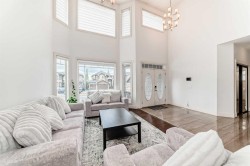 This is a wonderful opportunity to own a spacious home in the highly sought-after Kinniburgh community in Chestermere. With over 4,600+ sq ft of living space, a walkout basement, and a warm, inviting layout, this house is ready to become your family's haven. From the moment one steps through the foyer, the home reveals its character. An open, bright ambiance tempered by a gracious 9-foot ceiling and an open-concept layout that softly guides the eye toward generous windows, allowing abundant natural light to wash the interior. The main level elegantly balances reception spaces with everyday livability. A den offers a quiet retreat for study or work, while a half-bath serves guests with discreet practicality. The heart of the home lies in the expansive kitchen, where a substantial island anchors the space, storage is abundant, and quartz countertops gleam beneath a stylish backsplash and contemporary cabinetry. The living and dining areas flow seamlessly from the kitchen, forming an ideal stage for gatherings that feel effortless and intimate in equal measure.Ascending to the upper level, one discovers a sanctuary of repose. The master bedroom stands as a cavernous retreat, complete with a walk-in closet and a private four-piece ensuite, a haven designed for daily renewal. The level continues with 3 additional well-proportioned bedrooms, a full four-piece bathroom, and a bonus room that offers flexible space for relaxation.. A convenient laundry area completes this floor, aligning comfort with practicality.The journey continues downstairs, where the fully finished WALKOUT basement awaits. Here, two more bedrooms, a full kitchen and a full bathroom provide ample accommodation for guests or family members seeking privacy, while a separate side entrance enhances the suite’s (ILLEGAL) versatility for multi-generational living or rental opportunities.