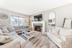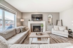 Welcome to 10 Riviera Place — a beautifully appointed 3-bedroom, 2.5-bath home that combines style, comfort, and thoughtful design. The open-concept main floor features durable laminate flooring, a cozy gas fireplace, and a gourmet kitchen complete with granite countertops, wall oven, gas cooktop, and a spacious corner pantry. Upstairs offers a large bonus room, convenient laundry, and a separate office space — perfect for work or study. The primary suite provides a relaxing retreat with a luxurious 5-piece ensuite featuring quartz countertops and tile flooring. Enjoy outdoor living in the fully landscaped yard with an extended composite deck, ideal for entertaining. Additional highlights include central air conditioning, an unfinished basement ready for your personal touch, and a double attached garage that is insulated and drywalled. With durable composite siding, permanent lighting and timeless curb appeal, this home is move-in ready and waiting for you!