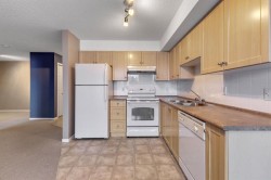 Welcome to this inviting one-bedroom plus den condo in the heart of downtown Cochrane! A ground-level unit with only one shared wall! A rare find! Step inside and you will notice the warm afternoon sun from west facing windows, making your open concept living room & kitchen space feel bright and cozy. Enjoy the convenience of in-suite laundry, and plenty of space for a home office, guest area, or bonus living space in the den. Step outside and you are just minutes from shops, restaurants, grocery stores, parks & schools etc; making this one of the most walkable locations in town! Your outdoor assigned parking stall is close to the main entrance & the units sliding door, added convenience! And low condo fees! Whether you're a first-time buyer, downsizing, or looking for an investment property, this well-situated condo gives comfort, convenience, and exceptional everyday living!