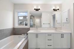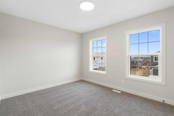 Welcome to your new home in the boutique community of Rivercrest in Cochrane! Built by Trico Homes, this stunning 3 bedroom home is bright, welcoming and has the perfect layout. Upon entering, you'll find a spacious main floor flex room, ideal for a home office, study, or kids playroom. Continuing into the main area, you’re greeted by the large full wall of windows to enjoy amazing sun from your south facing backyard. Your open concept kitchen is complete with a built-in stainless steel appliance package including a gas range and additional drawers, hello storage! Enjoy cooking with ample counter space, a large pantry and spacious island; perfect for your kids to enjoy breakfast or entertain. An inviting electric fireplace adds warmth and coziness to your living room making it perfect for relaxing evenings. Heading upstairs you are greeted by a spacious & centrally located bonus room perfect for family movie nights or kids play space. Your primary suite is spacious & complete with a luxurious ensuite including double sinks, drawers for storage, upgraded tile shower and soaker tub. Conveniently situated just off your ensuite, is your spacious walk-in closet. Enjoy a full upstairs laundry room complete with additional storage and space to hang your clothes. The kids wing of the home is complete with two well appointed spare rooms with walk-in closets and a full spare bath with quartz countertops. In the basement you will find a separate side entrance, 9’ foundation, 3-piece bathroom rough-in and 2 basement windows perfect for your future development. Outside, enjoy the full day sun on your back deck and spacious 38’ wide future yard. Rivercrest is a quiet boutique community with stunning mountain views and a future school site. Enjoy getting to know your neighbours, on a quiet street and convenient access to everything Cochrane has to offer! Living here means convenient access to Calgary, minutes from Spray Lakes Recreation Centre & downtown Cochrane! You have everything Cochrane has to offer right at your doorstep. Don’t miss the opportunity to move into your new home before Christmas! *Interior photos are representative to a previous build, please get in touch for more details on the interior finishes of this home.*