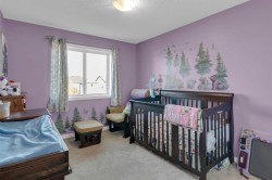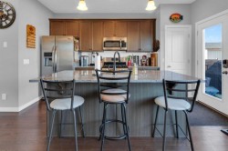 Nestled in the heart of Fireside, Cochrane, this affordable three-bedroom, family home boasts both modern design and practical living. The main floor is very inviting with sunny, south facing window, hardwood floors throughout and a gas fireplace keeping you warm & cozy in the winter and central air conditioning keeping you cool in the warmer months. The spacious kitchen is the perfect for entertaining or family dinners, equipped with stainless steel appliances, upgraded gas range and granite countertops. Upstairs you will find the primary bedroom with four-piece ensuite with granite countertops and walk in closet. Full basement with roughed in plumbing for future development. Extra-large capacity hot water tank and high efficiency furnace. Other pluses include central vac, nest thermostat and security system hardware. The back yard is fully fenced with dog run, a gravel parking pad and lane behind. Fireside connects residents with the outdoors like no other community. Hosting a community garden, outdoor ice-rink, two parks, soccer fields, a baseball diamond, pathway systems and stunning preserved wetlands. Fireside also boasts two schools within the community, Fireside School (Rocky View Schools K-8) and a K-9 school for the Calgary Catholic School District. Book your private tour today and move in by Christmas!