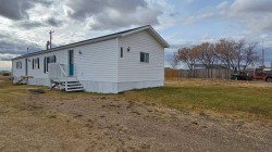 Totally renovated 1994, 16x74 mobile, with three bedrooms and two bathrooms, sitting on its own(no fees) lot in Coronation has the following- new vinyl plank glue down flooring, new asphalt singled roof, new siding, some new windows, new hot water tank, new water lines, insulated and painted skirting, new eaves troughs, leveling of the home, and heat trace on the water lines below. The furnace has been fixed and is operating as normal. This home comes fully painted, with some new fixtures in the bathrooms, new gorgeous glass shower doors in the main bathroom, the 4 piece en suite all done up, painted cupboards, new range hood, , new sink and near new fridge and stove. The walls are accented with wood style paneling, giving it a very stylish look. The light fixtures throughout the home have also been upgraded to modern style ones. There is outside parking off the street with empty lots beside you. With a ton of work put into this one, there is only the thought of how long it will take you to pack you bags and enjoy the renovated home. Early possession for the approved buyer is available.