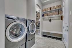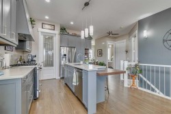 Welcome to a home where thoughtful craftsmanship, timeless finishes, and intelligent design come together in perfect harmony. Located in a peaceful, family-friendly neighbourhood, this stunning McKee-built bungalow offers over 1,400 sq ft of main floor living and a partially finished basement that’s already prepped with drywall, luxury vinyl plank flooring, and Dricore subflooring—ready for your finishing touches. Step inside and be greeted by soaring 10’ ceilings and engineered hand-scraped hardwood floors that create an instant sense of space and elegance. The custom kitchen is truly the heart of this home, featuring painted cabinetry, quartz countertops, a gas stove with a showpiece custom hood fan, built-in wood shelving, and a matching island eating bar. A walk-through pantry offers ample storage and everyday convenience. The open-concept living room includes a cozy gas fireplace and bright windows that flood the space with natural light, while the dining area is accented with a transom window for added architectural interest. With two spacious bedrooms and two full bathrooms on the main floor, this home is equally ideal for growing families or downsizers looking for one-level living. The primary bedroom is a peaceful retreat that easily accommodates king-sized furniture and includes a luxurious 5-piece ensuite complete with double vanity, soaker tub, separate shower, and a generous walk-in closet. A dedicated main floor laundry room adds convenience, and the front-attached garage comes outfitted with a high-end Gladiator organization system—ideal for anyone who appreciates a tidy space. Step outside to a beautifully landscaped and fenced backyard that backs onto a rear lane, offering extra privacy and versatility. Invisible screens on the front and back doors allow you to enjoy fresh air without the bugs, and a Kinetico water system adds another level of comfort and quality. This is a rare opportunity to own a well-built, move-in-ready bungalow by one of the most trusted local builders. Whether you're relaxing at home or entertaining guests, this property offers the lifestyle you've been dreaming of. Don’t wait—book your private showing today and make this stunning bungalow your next home!