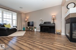 Built in 2011 and located in the popular, family-friendly community of Chappelle, this former showhome offers a charming front veranda, built-in speaker system throughout, central A/C and central vac system. As you step inside, a spacious entryway leads to an open concept living room and dining room. The kitchen features stainless steel appliances and a walk-in pantry. A 3-sided fireplace adds to the main floor's appeal along with engineered hardwood flooring throughout. Upstairs you will find a convenient laundry room and 3 bedrooms, with the primary bedroom boasting a 3 pc ensuite. The kitchen leads out to a deck - perfect for enjoying the spacious, tranquil backyard. An oversize detached garage completes this property. The basement is an open canvas, waiting for your finishing touch. It has an extra window and is roughed in for a bathroom. This home is definitely a MUST SEE!