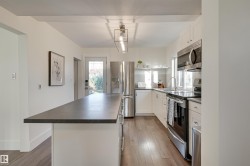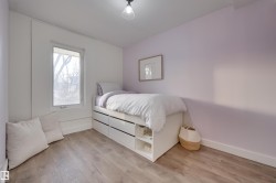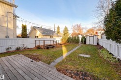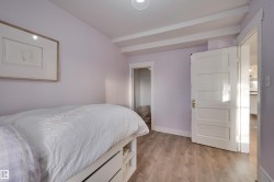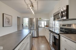 Welcome home to this CHARMING RENOVATED CHARACTER home situated on a 33' x 123' lot on a quiet tree-lined street in the desirable Bellevue/Highlands neighborhood close to schools, parks, transportation, the river valley trails & quick access to Concordia, NAIT & Downtown. This GORGEOUS, BRIGHT 930 sq.ft. home has a total of 2 bedrooms. On the main level there is a sun room, bedroom & OPEN CONCEPT kitchen, living & dining room with a gourmet kitchen with white cabinetry, stainless steel appliances & an island with lots of storage. The 3 piece bathroom completes the main level. Upstairs is the loft/primary suite with space for an office as well. The basement is open for your personal taste. Fenced east facing yard with a shed, vegetable garden, junipers & many perennials such as lilies, peonies & hostas. Parking pad. The furnace and hot water tank are 5 years old, roof 3 years old, upgraded 100 amp service. A beautiful home in a convenient location in a friendly community. Shows extremely well!!