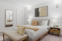 GREAT INVESTMENT OPPORTUNITY in BELGRAVIA, and just steps away from the UNIVERSITY of ALBERTA, and only a few hundred metres to Belgravia LRT (next stop: University Station). This 2-storey infill c/w a SEPARATE ENTRANCE and rough-ins for a FUTURE LEGAL SUITE offering great rental potential for student & professionals alike! Offering 4 beds and 4bath, this half-Duplex features ACRYLIC STUCCO and LUX PANELS with LOW-MAINTENANCE LANDSCAPING front and back, including ARTIFICIAL TURF. Inside HARDWOOD flooring, QUARTZ counters, bar area, gas fireplace. The 2nd floor offers a SPACIOUS PRIMARY bedroom with large walk-in closet, DUAL-SINK ENSUITE, and BALCONY. Two more bedrooms, upstairs laundry, and a 4-pc bath complete the 2nd level. The FULLY FINISHED BASEMENT includes a large family room, 4th bedroom, full bath. DOUBLE GARAGE, modern exterior, and walkable location close to cafés, transit, parks, and Edmonton’s core amenities make this a turnkey option for professionals, families, or investors alike.