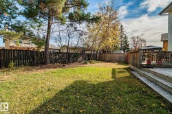 This stunning 2-storey home offers almost 2,400 sq. ft. above grade plus a fully finished basement! The grand foyer welcomes you with a soaring two-storey ceiling and elegant open staircase. The main floor features a formal living and dining area, gleaming hardwood floors, and a spacious kitchen with warm wood cabinetry, gas range, and views of the backyard. The cozy family room with a wood-burning fireplace opens onto the deck—perfect for entertaining. Upstairs, an open loft makes a great den, office, or reading nook, along with four generous bedrooms. The primary suite includes a walk-in closet and a private 5-piece ensuite. The finished basement adds a large rec room, bedroom, and full bath. Updates include two Carrier furnaces, a newer roof, insulation, paint, hot water tank (2020), and washer/dryer (2021). Located on a quiet cul-de-sac on a large pie-shaped, fully fenced lot, this home offers incredible space, comfort, and timeless charm!