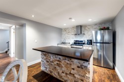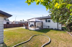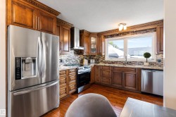 Beautifully updated in Homesteader! ~2,380 sq.ft. of finished living space (1,246 up + ~1,134 down). 3+1 bedrooms, 2 spa-style 3-pc baths with walk-in showers fully tiled to the ceiling. Showpiece kitchen: custom craftsman wood cabinetry to the ceiling with crown moulding, deep drawers, mosaic tile backsplash, granite counters, stainless steel appliances & chimney hood fan. Bright living/dining with bay window, hardwood, and a wood-burning fireplace. Lower level adds a second kitchen, large rec room & 4th bedroom. Big-ticket updates include shingles (house & garage), all windows, a newer furnace & HWT, exterior paint, updated interior/exterior doors, and newer lighting/plumbing fixtures. Outside: newer cedar fence & large concrete patio, plus an oversized heated, insulated & taped double-detached garage. Near schools with a 2-minute walk to Homesteader Elementary, parks & transit—turn-key and ready to enjoy!