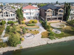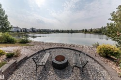 Gorgeous Lakefront Two-Storey with Walkout Basement. Situated on the tranquil shores of Carlton Lake, this stunning home offers over 4,425 sq. ft. of living space on a beautifully manicured 0.24-acre lot. Stone pathways, lush landscaping, and a lakeside firepit create the perfect outdoor retreat, while a private hot tub at the back lets you relax to the evening sounds of nature. Inside, the home features 5 spacious bedrooms, 4 full baths, 3 fireplaces, 3 family rooms, bar, all designed with large, sun-filled windows that showcase both breathtaking lake views and abundant natural light. Numerous updates throughout include new flooring, fresh paint, upgraded bathroom fixtures, furnace, hot water tanks, central A/C, and more—making this property move-in ready. A triple attached garage provides ample space for vehicles and storage, while the walkout basement expands your living and entertaining options. Located close to all the amenities of the Carlton community—shopping, arenas, playgrounds, and schools -