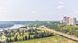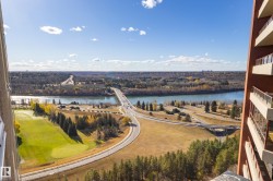 A SPECTACULAR RIVER VALLEY LOCATION! Put this 15th-floor condo on your “Most Wanted List”...it checks all the boxes! This CORNER unit features 1 bed + den, 1 bathroom, and picture windows showcasing INCREDIBLE VIEWS from every room. The UPGRADED KITCHEN offers an abundance of cabinetry with under-cabinet and in-cabinet lighting, plenty of counter space and opens to a bright dining area...perfect for entertaining! The space is filled with NATURAL LIGHT, making the spacious living room the ideal spot to relax or step onto the balcony to take in the BREATHTAKING River Valley scenery. Down the hall are two GENEROUS bedrooms with large closets and a well-appointed 4-piece bath. Complete with in-suite storage, A/C, U/G parking, and all the AMENITIES! The Athabascan is located around the bend from the highly sought after High Street where you can enjoy a plethora of unique shops and places to dine or simply just walk out your door for a coffee, gelato and sweet treats! Can't forget HEAT and ELECTRICITY INCLUDED!