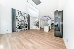 Nested in the highly sought community of Gorman is this well appointed, fully upgraded and custom built semi-detached home with a finished basement with separate heating furnace. Step into the foyer where luxury vinyl plank leads to the open concept living area with OPEN-TO-ABOVE ceiling, flooded with natural light. The custom kitchen showcases QUARTZ counter tops, modern cabinetry with built in appliances and a SPICE KITCHEN. Upstairs, you will love the tranquil primary suite with a PRIVATE BALCONY, luxurious 5pc ensuite and a walk in closet. You’ll also find 2 generous size bedrooms, 4pc bath, a cozy bonus room and a convenient upstairs laundry. The finished basement offers a 2-bedroom, kitchen, full bath and living area perfect family use. Enjoy outdoor living on the completed deck, with quick access to Anthony Henday Drive, grocery stores, schools, and nearby amenities.