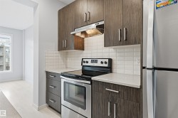 Absolutely stunning and spacious 2 BDR TOWNHOUSE W/ 2 ENSUITES and 2 car tandem garage in desirable Walker! Main floor features 9' ceilings & quality finishings incl quartz counters, wide plank vinyl floors. The functional kitchen has SS appliances, walk-in pantry & generously sized eating bar. Bright living room features a large window & attached balcony to enjoy the fresh air & green space. Upstairs, you'll find two generously sized bedrooms, both with their own full 4-pc bath ensuites and walk in closets - perfect for two roommates or a couple. Energy-efficient mechanical including HRV & tankless hot water for a lower utility bill. This well maintained complex offers visitor parking and nearby walking trails & lake. Excellent location conveniently close to everything you need incl shopping, schools & public transit. Quick access to major routes incl Anthony Henday and Ellerslie Rd