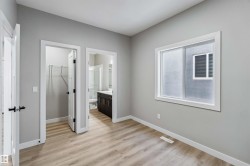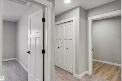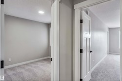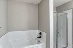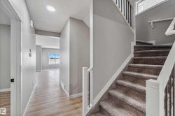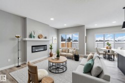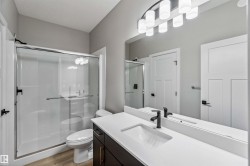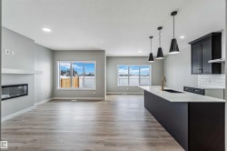The Accolade is a spacious 2540sqft Evolve model featuring an oversized dbl attached garage, separate side entry, and 9' ceilings on both the main & lower levels. Stylish LVP flooring runs throughout the main floor, which includes an inviting foyer with 2 closets, a full 3-pc bath, and a bedroom with a walk-in closet. The open-concept layout offers a bright nook, a great room with fireplace, and a chef-inspired kitchen with quartz counters, island, Silgranit sink, matte black faucet, chimney-style hood fan, ceiling-height cabinets with crown moulding, soft-close doors & a large corner pantry—plus a full spice kitchen for added convenience. Upstairs, the primary suite includes a walk-in closet & 5-pc ensuite with double sinks, a soaker tub, and a glass-door shower. 3 additional bedrooms, a main 3-pc bath, bonus room, and laundry complete the upper level. Additional features include upgraded railings, appliance package, basement rough-ins, extra side windows, throughout, and a garden door to the backyard.