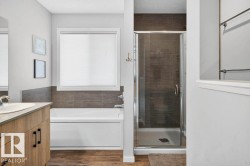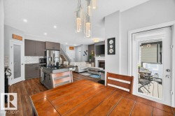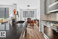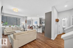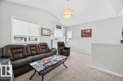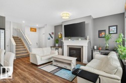 Welcome to this beautifully designed 2-storey F/F home featuring 4 bedrooms & 4 bathrooms. Step into a warm, inviting living room with a cozy fireplace that flows into the open-concept kitchen & breakfast nook. The kitchen boasts sleek stainless steel appliances, a gas stove, & central island with bar seating and access to the deck—perfect for entertaining. Main floor also offers a convenient stacked washer & dryer. Upstairs, split stairs offer privacy & function—one side leads to a spacious bonus room, the other to a 4-pc bath & 3 bedrooms, including the luxurious primary suite with a 5-pc ensuite & walk-in closet. The F/F basement has a private entrance, full kitchen, living area, bedroom, 3-pc bath, & laundry—ideal for extended family. Enjoy year-round comfort with central A/C & a double attached heated garage. The backyard is a low-maintenance oasis with turf, glass-railed deck, & a second patio space to unwind or entertain! Solar panels offer added efficiency. This home truly has it all!