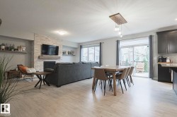 Absolutely stunning! Mattamy’s popular model, The Banff, is located in the desirable community of Stillwater. This open-concept home showcases quality craftsmanship and design. Perfect for large families, the main floor features 9’ ceilings and large windows that fill the space with natural light. Enjoy a mix of carpet, ceramic tile, and hardwood flooring with flush-mount wood vents. The gourmet kitchen boasts quartz countertops, stylish cabinetry, a large island with breakfast bar, and a convenient spice kitchen. A cozy gas fireplace warms the great room, and the spacious dining area is perfect for family gatherings. Upstairs, a vaulted bonus room opens to a covered veranda. The top floor includes two generous bedrooms and a master suite with walk-in closet and ensuite. If you're looking for something beyond the usual floor plans, this home is a must-see. Conveniently located near shopping, the airport, West Edmonton Mall, and Anthony Henday.