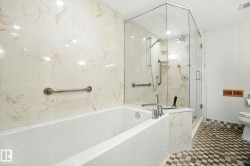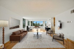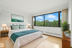 Welcome to 9929 Saskatchewan Drive. Have you been dreaming of a true lock-and-leave lifestyle? This is where it happens. Step inside this spacious, classically designed 2,400 sq. ft. condo featuring 3 bdrms and 2 full bathrooms. The moment you enter, you’ll be amazed at the expansive layout & timeless design. The open-concept living room, dining area, and modern European kitchen with a large island create the perfect space for both everyday living and entertaining. Large windows fill the home with natural light while offering spectacular 270° views of Edmonton’s downtown skyline and breathtaking river valley. Enjoy your SF indoor balcony year-round, BBQs welcome! This quiet, character-filled building offers the convenience of in-suite laundry & 2 heated underground parking stalls. Residents enjoy outstanding amenities, including a games room, party room, fitness centre, swimming pool, whirlpool, dry sauna, and outdoor patio. Just steps away, Edmonton’s celebrated River Valley.