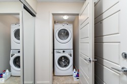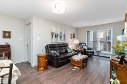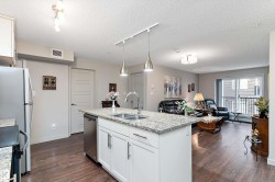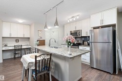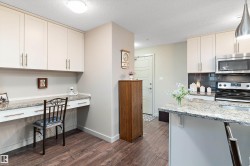 Modern and move-in ready! This stylish 2-bedroom, 2-bath condo offers the perfect blend of comfort and convenience in Edmonton’s Lake District. Featuring quartz countertops, tile backsplash, and stainless steel appliances, this open-concept home is designed for contemporary living. The kitchen includes a full-size pantry and eating bar that overlooks the bright living area. A built-in desk makes working from home easy, while in-suite laundry adds everyday convenience. The primary bedroom features a walk-through closet and private ensuite, with a second bedroom and full bath on the opposite side for added privacy. Enjoy the spacious balcony with gas BBQ hook-up, plus both underground heated and surface parking stalls. Heat and water are included. Ideally located near Lake Schonsee, parks, schools, shopping, and major routes. This home combines urban convenience with a peaceful community feel. PLUS 2 TITLED PARKING STALLS!!
