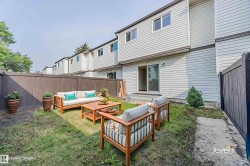 Beautifully renovated 3 bedroom, 2 full bath townhome in a well-managed complex with VERY LOW CONDO FEES-APPROXIMATELY $200 BELOW AREA AVERAGE! Offering a rare combination of TWO FULL BATHROOMS AND A FINISHED BASEMENT, this home provides exceptional space and versatility. The south-facing fenced yard backs onto a park, adding both privacy and outdoor enjoyment. Numerous updates include a modern kitchen, upgraded flooring (laminate, carpet, tile & plank vinyl), fresh paint, lighting, interior doors, casings, baseboards, furnace, water heater and appliances. The complex has also been upgraded with newer vinyl siding, windows and doors, ensuring long-term value. The main floor features a spacious eat-in kitchen and large living room; upstairs offers 3 bedrooms and a 4-pce bath. The finished basement includes a family room, 3-pce bath, laundry and storage. Assigned parking plus optional leased stalls at very low rates. Ideally located near trails, Hermitage Park, schools, shopping, transit, and major routes!