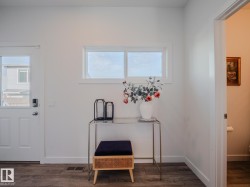 WOW! Step into this beautifully designed 3-bedroom, 2.5-bath home offering a bright and open-concept layout perfect for modern living. The spacious living room flows effortlessly into a generous dining area and a sleek, upgraded kitchen featuring a large island with breakfast bar, elegant quartz countertops, quality cabinetry, and a convenient pantry. A practical boot room and a stylish half bath complete the main floor. Upstairs, the primary suite offers a relaxing retreat with a walk-in closet and private ensuite. Two additional well-sized bedrooms, a full 4-piece bath, and an upstairs laundry room provide comfort and convenience for the whole family. An easily separated basement entrance offers fantastic potential for future development or a legal suite! Fenced yard, double garage and extra parking! Located in the vibrant Chappelle community, you'll enjoy access to scenic wetlands, vast green spaces, walking trails, schools, a community center, and more. Welcome Home!