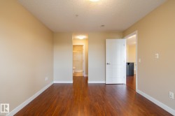 Welcome to Unit 303 at 12650 142 Ave NW in Solara! 2 bed, 2 bath unit, in great condition, offers 872 sq.ft of stylish comfort. Open layout features black appliances, dark cabinets & granite countertops w. eat-in bar. Primary bedroom includes walk-in closet & private 3-pc ensuite. Second bedroom sits across from a 4-pc bath. Bedrooms are on opposite sides for privacy. Extra flex room can be storage, den, or small office. White stacking washer/dryer included. Enjoy your own west-facing balcony. Comes with surface parking stall. Secure complex with exercise room. Steps to transit, walking distance to the Islamic school, and surrounded by shopping & restaurants. Quick access to 127 St & Anthony Henday. Don’t miss this affordable home!