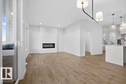 Our popular Purcell model is perfectly situated on a conventional lot, within walking distance of the off-leash dog park, playground, and pedestrian corridor in the desirable SW community of Paisley. Enjoy an east-facing backyard with a completed wooden fence along the rear, providing both privacy and style. Inside, the bright living room features a flex room for added function and a modern electric fireplace. The walk-through pantry adds everyday convenience. An enclosed side entrance offers practicality and excellent potential for future basement development. The designer kitchen showcases 3CM quartz countertops, an undermount Silgranit sink, and modern black pendant lighting above the island. Included appliances are a French-door refrigerator with internal water and ice, dishwasher, electric range, built-in microwave, and a chimney-style hood fan. Upstairs, enjoy a large bonus room. The upgraded ensuite adds a touch of luxury with dual vanity sinks, stand alone tub and shower.