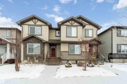 Beautiful duplex in Laurel with a newly finished basement and standout curb appeal! This 4-bed, 4-bath home offers a bright open-concept main floor with a spacious living room, functional dining area, and a kitchen featuring neutral cabinets, major appliances, and a large pantry. Upstairs includes a generous primary suite with a 4-piece ensuite, two additional bedrooms, a full bathroom, and linen storage. The fully finished basement adds a 4th bedroom and another full bath. Outside, enjoy a double detached garage and an ideal location just steps from a scenic pond, walking paths, parks, Meadows Rec Centre, Mill Woods Town Centre, schools, and the Anthony Henday.
