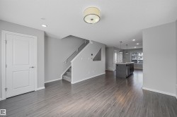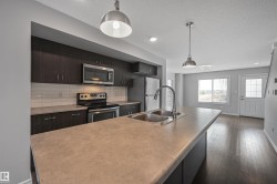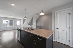 Well maintained 2 bed/2.5 bath END UNIT townhome in SE Edmonton! Perfect for 1st time home buyers & investors. Open concept layout, ample natural light, & hardwood flooring on the main level. Spacious kitchen w/ a huge island, stainless steel appliances, pantry, full height cabinetry, subway tile backsplash. Upper level offers 2 well-sized bedrms - primary bedrm incl 4 pc ensuite w/ dual sinks, walk-in shower & walk-in closet. 2nd bdrm also has ensuite/walk-in closet. Lower level has an attached single car garage & mudroom. Nicely-appointed location w/ low maintenance fenced-in yard to enjoy the warmer months. Higher energy efficiency w/ tankless hot water & HRV for a lower utility bill. Visitor parking available. Walking distance to tons of amenities, including park/pond. Located close to schools, shopping, public transit, Meadows Rec Centre, community playground & league. Quick access to major commuter routes incl Anthony Henday & Whitemud for effortless commuting!