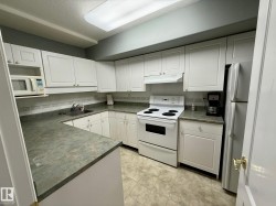 Welcome to this bright and updated 1-bedroom, 1-bathroom condo offering 663 sq. ft. of comfortable living space in a 55+ adult building. The home features brand new carpets, fresh paint, and laminate flooring throughout. The functional layout includes a spacious in-suite laundry room, a kitchen with built-in dishwasher, and a living room with corner gas fireplace and tiled surround. Large south-facing windows provide plenty of natural light and access to a private balcony. This well-maintained building includes an elevator, social room with kitchen, and heated underground parking with personal storage cage. Condo fees cover heat, water, building insurance for common areas, and exterior maintenance. Conveniently located directly across from Bonnie Doon Shopping Centre, with easy access to bus routes, the new LRT line, Bonnie Doon Leisure Centre, and Idylwylde Public Library.