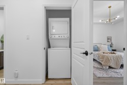 Luxurious living awaits in this FULLY RENOVATED 2 bed 1 bath condo w/HIGH END finishes offers nearly 1000 SF of bright modern space in an unbeatable downtown location. Greeted by 10' ceilings, expansive windows flood your home w/natural light, creating an inviting atmosphere.The open concept layout is anchored by a stunning BRAND NEW kitchen w/QUARTZ counters, sleek white cabinetry w/built in pantry, elegant fixtures, BRAND NEW S.S appliances, & a functional island, ideal for everyday living & hosting. Find 2 generously sized bedrooms + a spacious 4pc bathroom w/a spa like retreat, deep SOAKER TUB & tiled shower. Updates include brand new LUXURY vinyl plank flooring, baseboards, elegant light fixtures, & fresh paint. Unwind & take in city views on your private west facing balcony. Enjoy the convenience of IN SUITE LAUNDRY + a titled, HEATED UNDERGROUND parking stall w/storage. Steps to Jasper Ave, Oliver Park, transit, cafes & minutes to Grant MacEwan, Brewery & Ice Districts, & all downtown amenities.