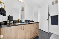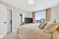 Welcome to this stunning home in South Edmonton, crafted by the multi-award-winning builder, Rohit! BACKING TREES!! FULLY LANDSCAPED FRONT AND BACK. SIDE Entrance!! This beautiful 2-storey home showcases an open-concept layout, 9' ceilings and expansive windows that flood the space with natural light. The chef-inspired kitchen features ample counter space, gas stove, stylish cabinetry, perfect for everyday living and entertaining. The adjoining dining area is ideal for hosting guests and offers direct access to the backyard through patio sliders. Upstairs, the primary suite is a serene retreat, complete with a 4-piece ensuite and a walk-in closet. Two additional bedrooms, a 4-piece main bath, and convenient upstairs laundry complete the upper level. Additional features include: a 2-piece powder room, mudroom, and a front-attached garage.This home offers an unbeatable combination of style, comfort, and convenience. Perfectly positioned with quick access to Hwy 2, Anthony Henday, schools, and airport