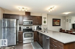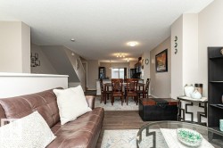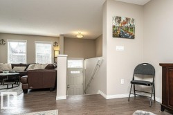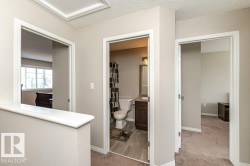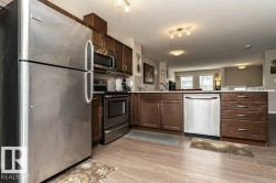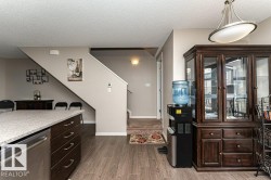 Desirable sought after location in EDGEMONT. This well maintained 2 storey Towhouse offers over 1500 sq ft, 3 bedrooms and 3 bathrooms. Spacious open living area. Modern kitchen with sliding doors to BALCONY, quartz counters, large island with seating, plenty of cabinetry. Nice size bright living room with adjoining dining area. Convenient 2 piece bathroom. Upstairs offers, Primary bedroom with 3 piece ensuite and walk in closet. 4 piece bathroom, and two other generous sized bedrooms. Basement with laundry area and storage, access to garage. Enjoy the low maintenance fenced yard backing on to walkway. 17'x23'DOUBLE ATTACHED GARAGE, LOW CONDO FEES. Super location with convenient access to Anthony Henday & Whitemud, shopping, transit and schools.