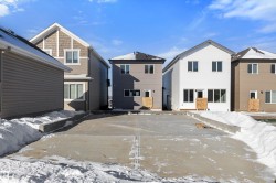 Experience modern comfort in this bright laned home by Sterling Homes, nestled in the nature-inspired community of Kinglet near Big Lake. The main floor feels open and airy thanks to 9’ ceilings, triple-pane windows, and a sun-filled living room. At the rear, a functional kitchen features quartz countertops, upgraded cabinetry, a pantry, and a sink window overlooking the backyard. Upstairs, the primary suite serves as a private retreat with its walk-in closet and glass-shower ensuite. Two additional bedrooms, a full bath, and convenient upper-floor laundry complete the level. Stylish luxury vinyl plank flooring runs throughout, while a separate side entrance and basement rough-ins offer excellent future development potential. Outside, the generous yard includes a parking pad ready for a future garage, all just steps from serene pond trails.